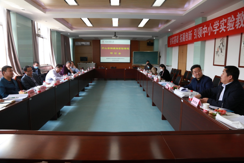 为了全面贯彻全国教育大会精神,落实教育部《关于加强和改进中小学实验教学的意见》教基[2019]16号文件精神,切实发挥师范大学为基础教育服务的责任、使命和担当,2020年4月28日上午,8x8x 科学教育仪器研究开发中心在雁塔校区教学七楼举办了“中小学拓展性实验课程”研讨会。