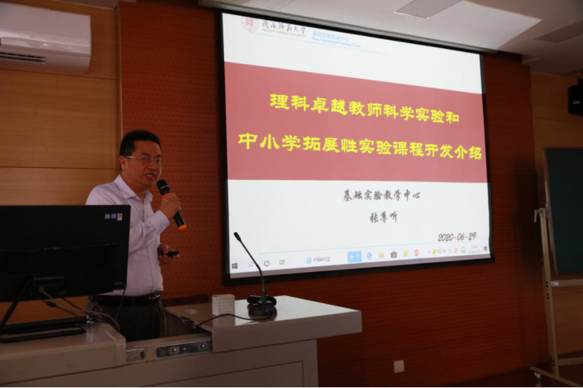 副校长杨祖培充分肯定了科教仪器研发中心在卓越教师科学实验课程开发中做出的积极探索,再次强调了只有把新知识、新进展、新理念、新技术不断融入实验教学,培养出一批教育情怀深厚、专业基础扎实、勇于创新教学、具有终身学习发展能力的高素质专业化创新型中小学教师,才能进一步发挥我校的师范特色,真正打造出我校陕西师大的品牌。
