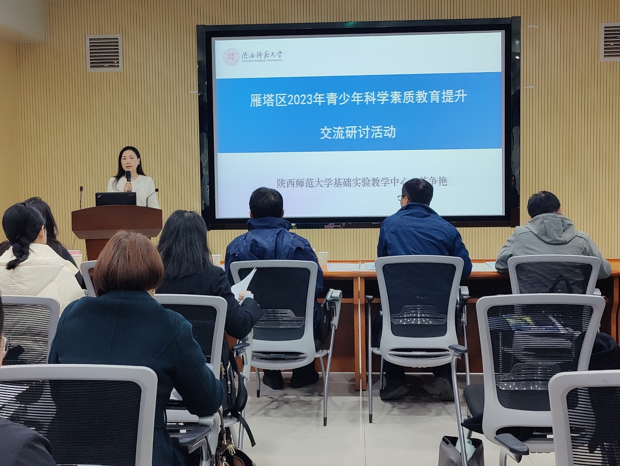 西安植物园、长安大学、西安石油大学、西安欧亚学院等科普教育基地分享了科普场馆的优势和科普活动的开展经验。西安市高新逸翠园初级中学和西安辅轮中学分别就青少年科技创新大赛等为雁塔区中小学校做专题培训。