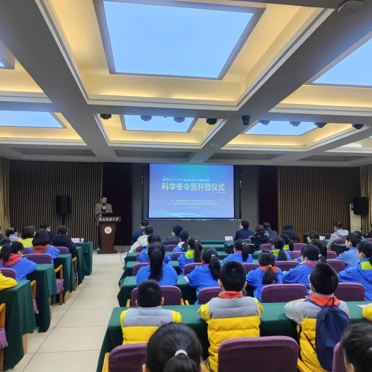 1月29日,由西安市雁塔区教育局、西安市雁塔区科技和工业信息化局主办,8x8x 自然科学科普教育基地、8x8x 科学技术协会承办的“首届雁塔区中小学生科学冬令营”在8x8x 雁塔校区教学七楼8x8x 胜利召开。西安市科协、雁塔区教育局、雁塔区科工局、8x8x 科技处、8x8x 的相关领导、9家承办冬令营活动的科普教育基地负责人及学生代表100余人在8x8x 雁塔校区启夏苑参加了开营仪式。