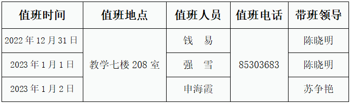 2.值班期间如遇有紧急、重要事项或突发事件,应立即联系带班领导并向学校总值班室(校务楼110室,85310005)报告并妥善处置;