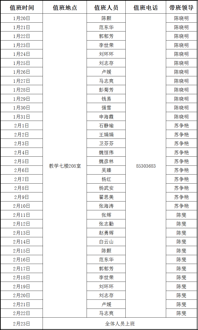 2024年寒假值班安排