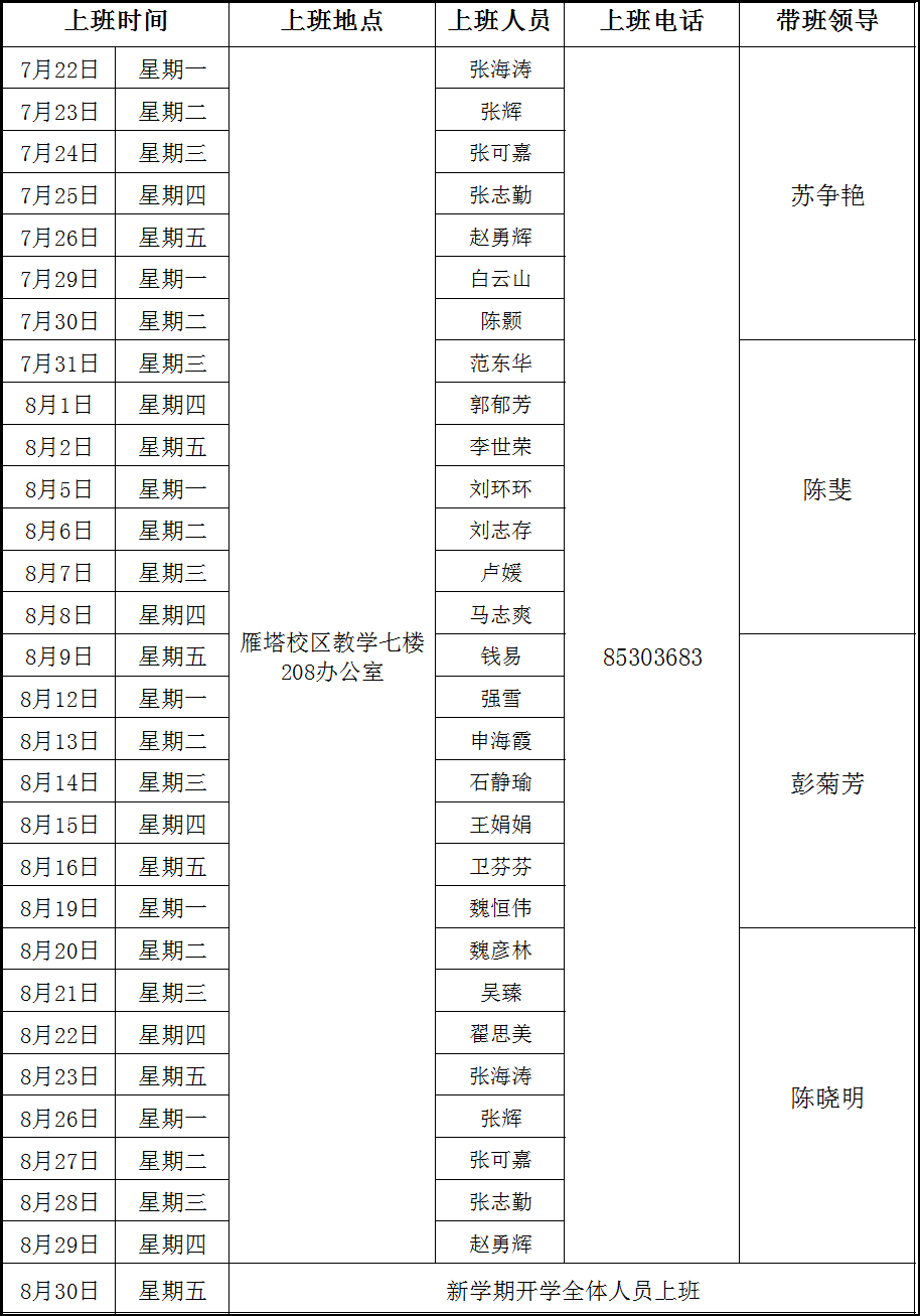 2024年暑期上班安排