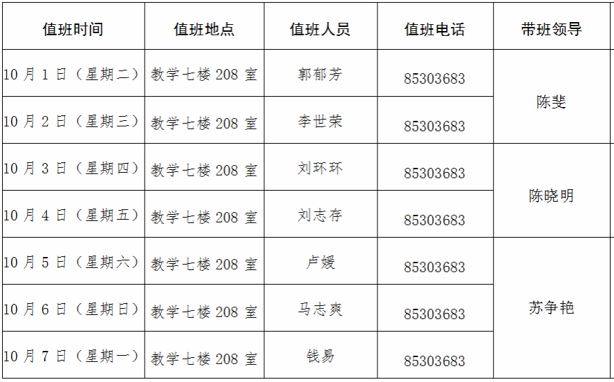2.值班期间如遇有紧急、重要事项或突发事件,应立即联系带班领导并向学校总值班室(校务楼110室,85310005)报告并妥善处置;