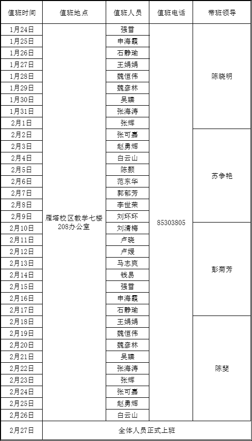 2026年寒假值班安排